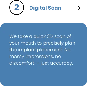 We take a quick 3D scan of your mouth to precisely plan the implant placement. No messy impressions, no discomfort — just accuracy.