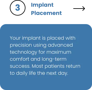 Your implant is placed with precision using advanced technology for maximum comfort and long-term success. Most patients return to daily life the next day.
